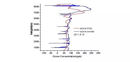 臭氧激光雷達示意圖臭氧濃度伴隨高度的測量結果