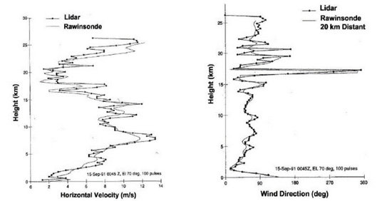 相干探測測風雷達結構示意圖風向與風速測量結果圖