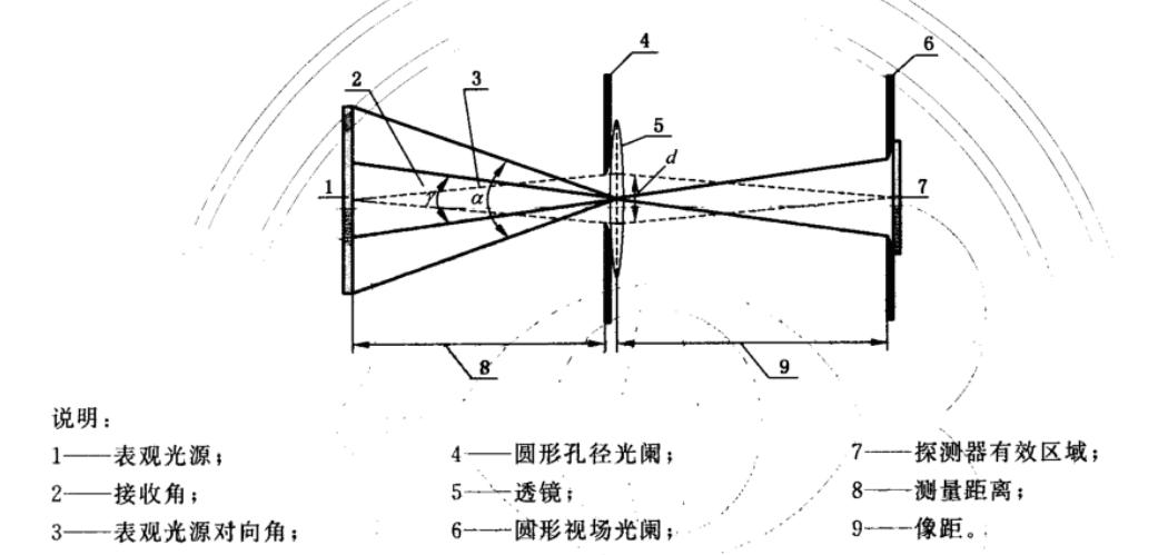 對向角是指表觀光源(包括漫反射)在觀察者眼睛或者測量點所張的視角,用弧度角表示,單位一般為毫弧度(mrad),計算公式為:α=2 arctan(d/2r),a為對向角,d為表觀光源尺寸,r為觀測距離。