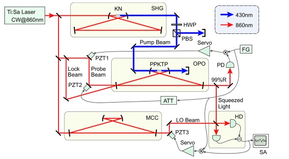 簡單講,光壓縮是為了提升探測系統(tǒng)的信噪比,這里常規(guī)而言,采用0型PPKTP晶體由于其很好的光子對轉(zhuǎn)化效率,首先提供了很高的信號水平;再進(jìn)一步的在一個分量上進(jìn)行壓縮,則獲得了這個分量更高的信噪比。