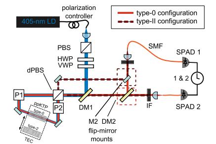圖七. 0型和II型PPKTP晶體自發(fā)參量下轉(zhuǎn)換驗證實驗