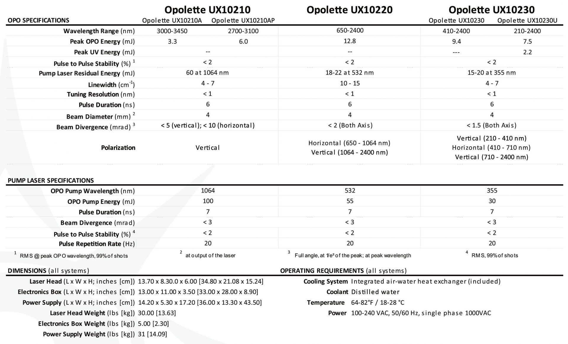 針對光生成像應用,OPOTEK公司有著一系列的產品和系統推薦:
