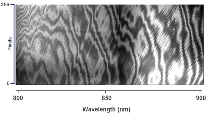 但與背感光芯片提供較高量子效率伴生的一個不利效應,就是其在特定波長范圍內產生的光學標準具效應。背感光芯片前后兩個彼此平行的表面,構成了類F-B干涉儀的兩個鏡片,在滿足兩個表面間距與入射相干光波長匹配條件的情況下,對特定波長范圍內的光,形成了干涉條紋。這種干涉條紋,對本真的待測信號,可以施加高達40%的有害周期調制因子,嚴重削弱了數據的可信性,給科研工作者的工作,帶來了極大的負面影響。