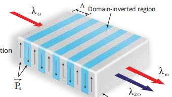 - 準相位匹配:雙折射相位匹配存在玻應廷走離效應,限制了非線性轉(zhuǎn)換效率的提高,而準相位匹配不存在這樣的缺點,可以在整個晶體長度上實現(xiàn)非臨界匹配,因此其相互作用長度不受限制,并且可以獲得在晶體的透過范圍內(nèi)整個光譜的諧波輸出