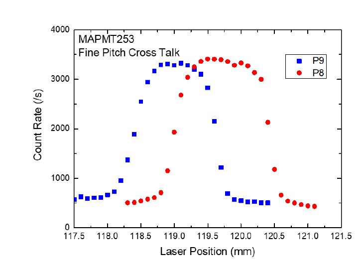 圖5 MAPMT253使用多光子脈沖測試邊緣效應