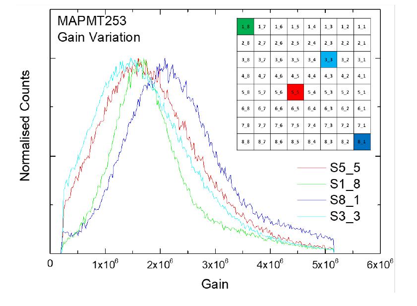 本文分析了這個新的MAPMT253的性能,其工作區域為53X53mm,總共64X64個陽極輸出。
