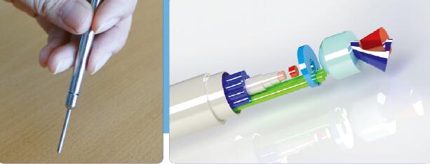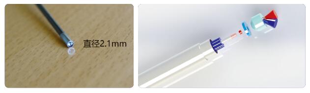 探頭尖端2.1mm,安裝500um焦距大F數微透鏡,適用于皮膚,腦外科手術等臨床探測。