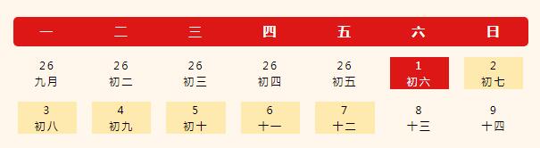 10月1日至7日放假調休,共計7天,10月8日(星期六)恢復上班。