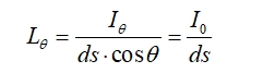光度學(xué)的亮度定義如圖2所示,對(duì)應(yīng)朗伯光型的光源在θ角方向亮度為:
