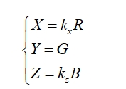 式中,kx、kz為色校準(zhǔn)系數(shù);R、G、B是儀器相應(yīng)各探測(cè)器的輸出值。