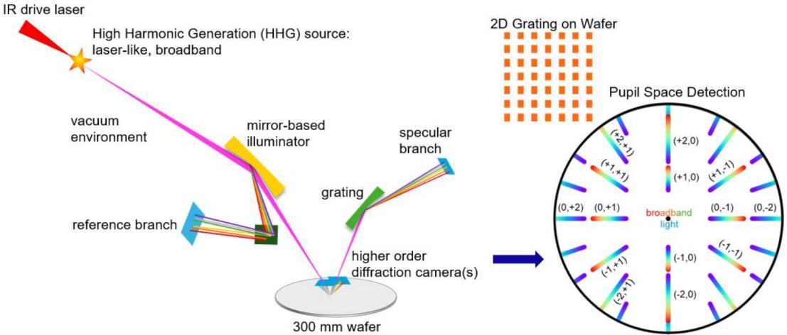 圖2、用于晶圓檢測的極紫外/軟X射線散射測量工具概念和遠場檢測示意圖。