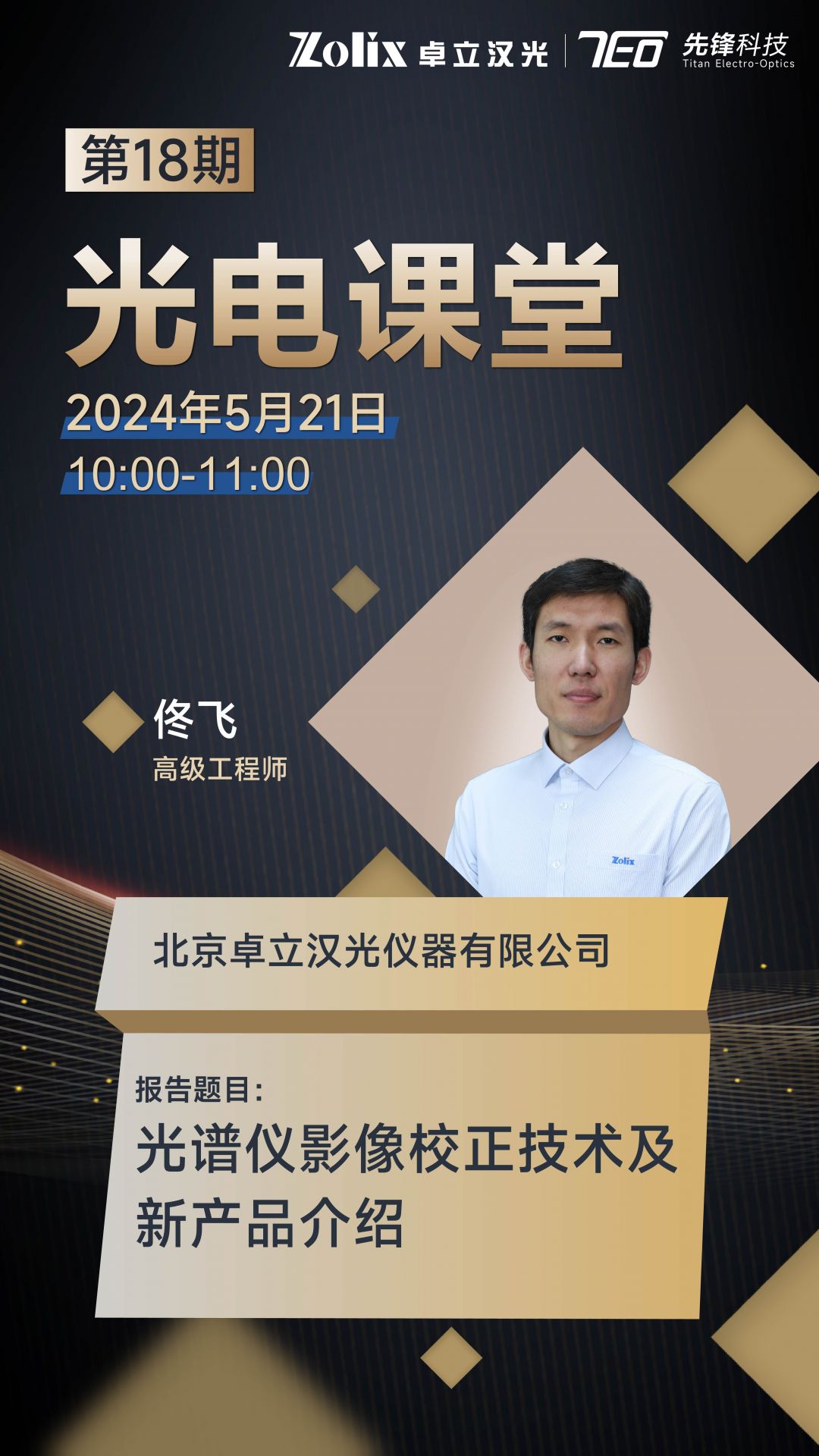 5月21日上午10:00—11:00,卓立漢光高級工程師——佟飛邀您一起探討光譜儀影像校正技術(shù)及新產(chǎn)品。直播期間更有豐富好禮相送,歡迎屆時參加!