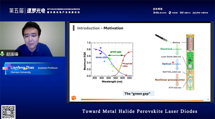 遠在美國克萊姆森大學趙連鋒助理教授通過國際直播平臺,為國內外科研工作者做Metal Halide Perovskite Laser Diodes英文報告,趙老師聚焦于金屬鹵化物鈣鈦礦半導體這一多功能的雜化材料,該材料在推動下一代光伏與發光技術革新中展現出巨大潛力。報告重點闡述了團隊在電泵浦鈣鈦礦激光二極管領域的*新突破,包括鈣鈦礦內光增益機制的深入研究,以及在極端電流條件下器件性能的優化策略。這些成果不僅增進了對該領域關鍵技術的理解,還為克服技術障礙、推動該技術變革性發展提供了寶貴見解。