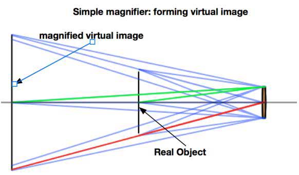 什么是“虛擬”圖像?最基本的,虛擬圖像是投射到空間的圖像。產(chǎn)生虛擬圖像的典型設(shè)備包括矯正眼鏡、雙筒望遠鏡、放大鏡、眼鏡、顯微鏡、望遠鏡、步槍瞄準鏡、近眼顯示器和平視顯示器。這些設(shè)備中的每一個都形成一個近場圖像,用眼睛觀看并適應基于儀器設(shè)計的距離。在創(chuàng)建“虛擬圖像”時,亮度和顏色測量是關(guān)鍵因素。這兩個都受到瞳孔的物理大小的影響