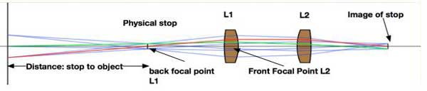 參考上圖,位于L1后焦點的遠心光圈定義了圖像尺寸隨對象位置的變化。 第二個鏡頭將光圈聚焦到固定點。 L1位于L2的前焦點,因此使L1的出瞳變?yōu)檫h心。 L1和L2的位置之間的關(guān)系提供了高度的瞳孔混合。 通過在L1的前表面放置一個物理擋塊,可以調(diào)整該系統(tǒng)的視場。 通過將MS-75鏡頭用作光學系統(tǒng)中的L2,可以將該設(shè)計體現(xiàn)為PRISM-75鏡頭的附件。