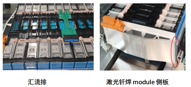 電芯組成模塊焊接主要是匯流排焊接以及側板焊接等: