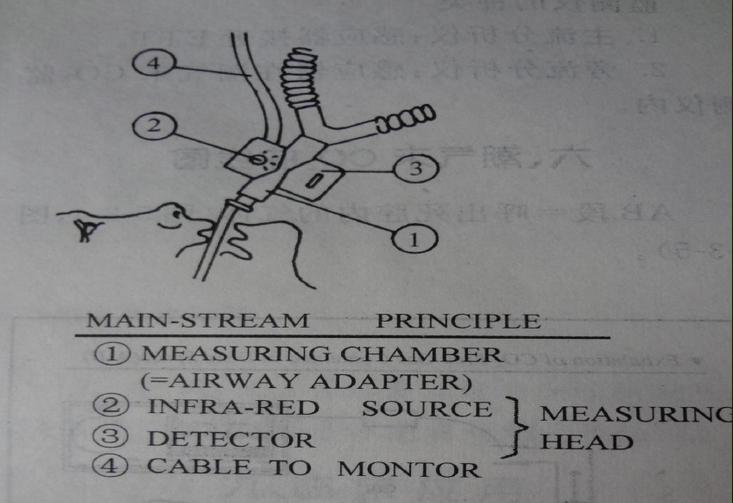 以主流型進行介紹,如下圖:包含紅外光源,探測器,氣道適配器,線纜。