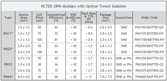 1、德國Ketek公司是低噪聲SiPM的供應商,其產(chǎn)品相比其他同類產(chǎn)品具有極低的暗噪聲和工作電壓以及較高的光子探測效率。