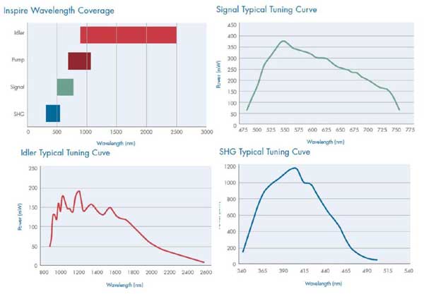 基于Radiantis技術(shù),Inspire輸出345 - 2500nm范圍內(nèi)無間歇調(diào)諧、變換極限脈沖之飛秒超快激光器。Inspire僅采用一套光學(xué)器件即可覆蓋紫外-近紅外的寬譜范圍,省卻用戶切換光學(xué)元件的困擾。獨(dú)立端口輸出倍頻激光、信號光、閑頻光以及殘余泵浦光。