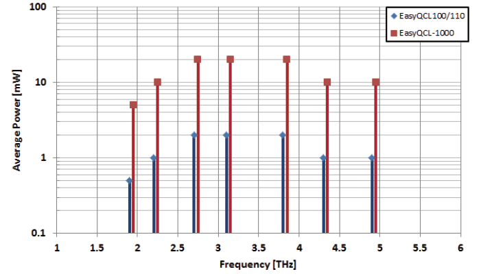 可在1-5THz 的高頻太赫茲波段有數毫瓦(即EasyQCL100 系列)及數十毫瓦的輸出即EasyQCL1000 系列),針對太赫茲高透過率樣品,可以獲得比太赫茲低頻段成像高一個數量級以上的空間分辨率。