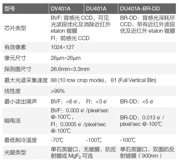 iDus 401系列深度制冷科學級光譜CCD技術參數指標