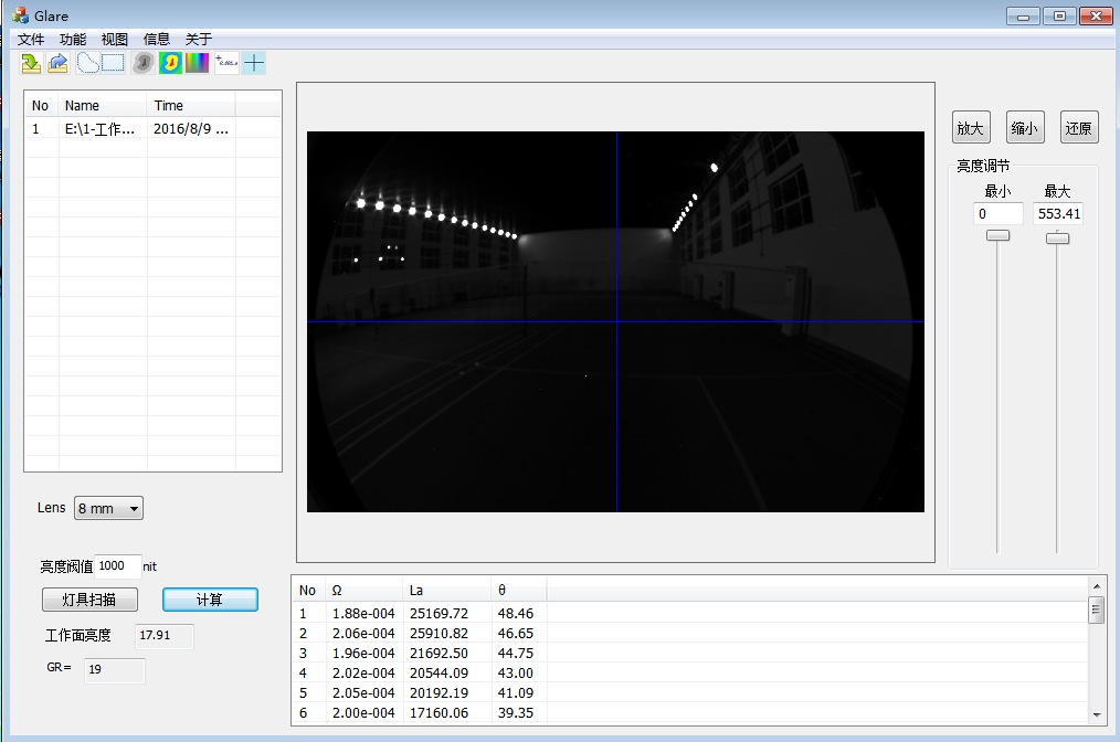 Glare眩光測(cè)量軟件現(xiàn)場(chǎng)測(cè)試數(shù)據(jù)