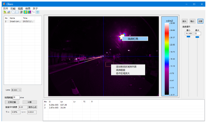 軟件對(duì)視場(chǎng)內(nèi)光源強(qiáng)度用偽彩色表示,可直觀判斷亮度強(qiáng)度的分布情況;