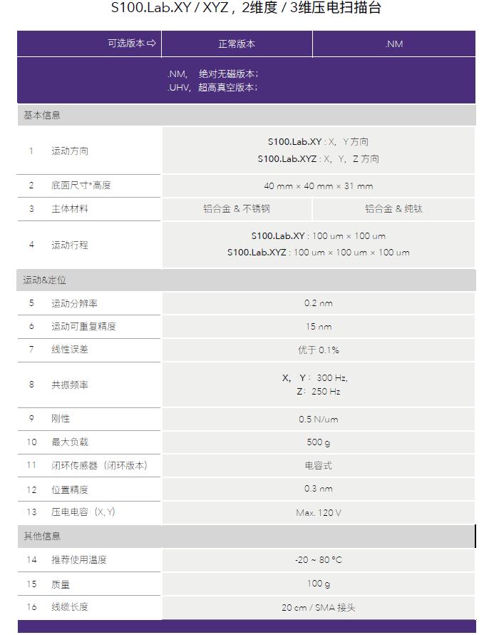 Carrier.S200.XY ?范圍壓電掃描臺(tái) — 技術(shù)參數(shù)|